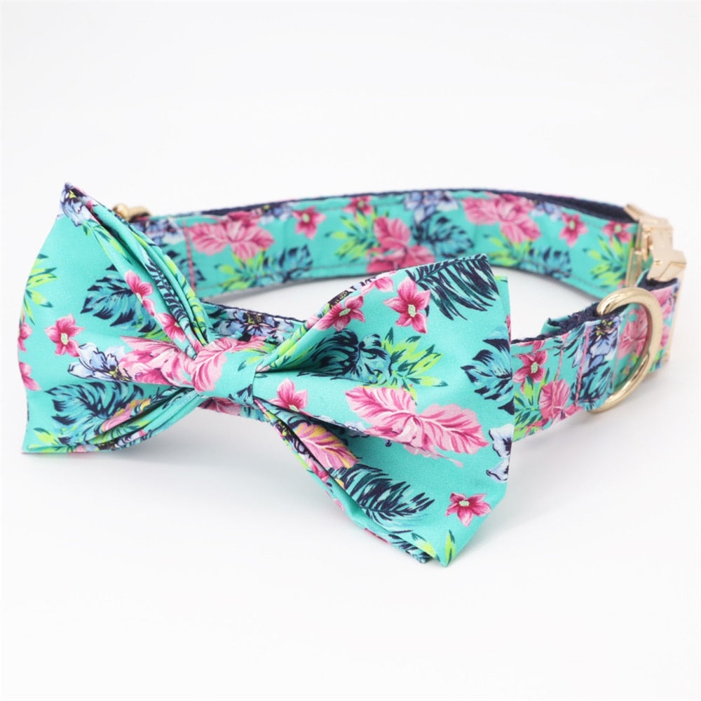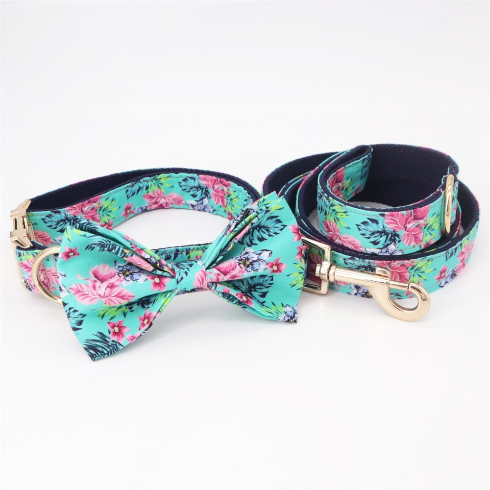 Blue Flower Dog Collar, Leash and Bow Tie Set
